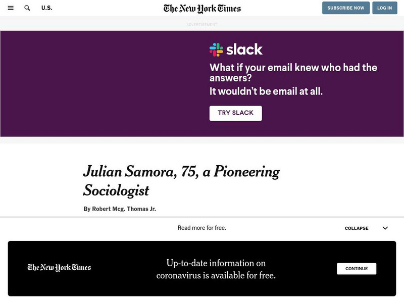 New York Times: Julian Samora, 75, a Pioneering Sociologist