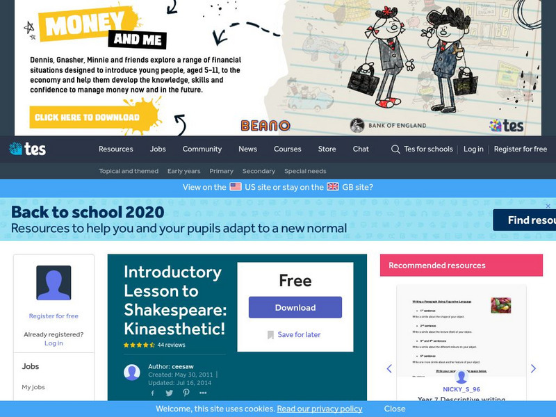 Tes: Teaching Shakespeare: Shakespeare Introduction: Complete Lesson