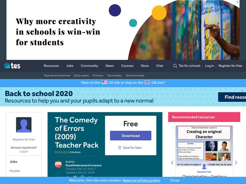 Tes: The Comedy of Errors (2009) Teacher Pack