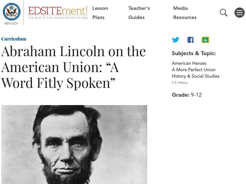 Neh: Edsit Ement: Abraham Lincoln on the American Union: "A Word Fitly Spoken"