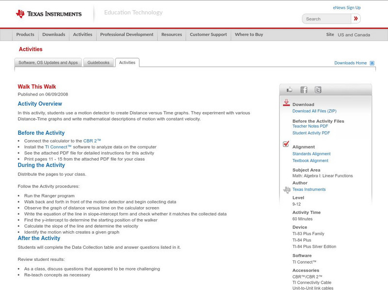 Texas Instruments: Graphing Your Motion With Easy Data App and Cbr 2