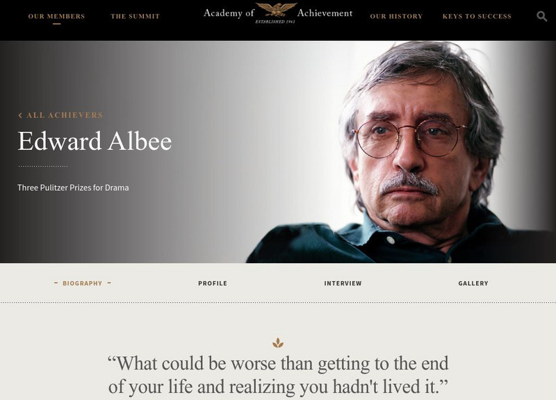 Biography of Edward Albee, American playwright and Pullitzer and Tony award honoree who wrote, Who's Afraid of Virginia Wolf, among other notable works. Students can read about Edward Albee's life and listen to interviews.
