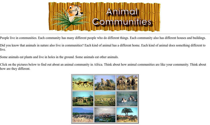At this site click on the pictures to find out about an animal community in Africa. Think about how animal communities are like your community. Think about how are they different.
