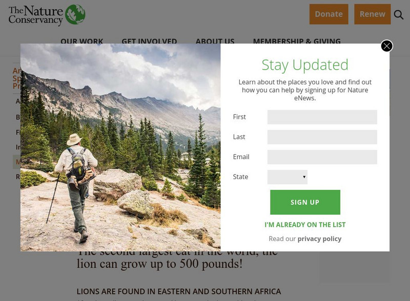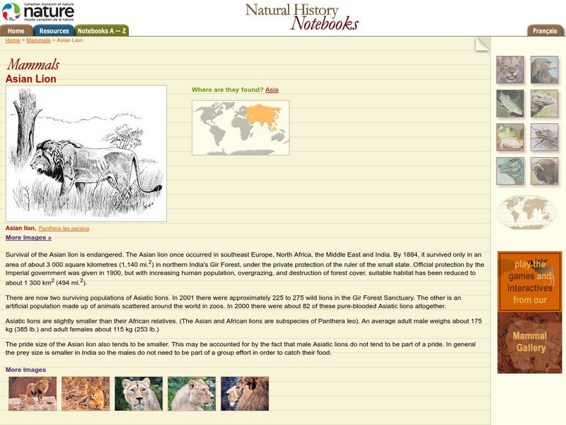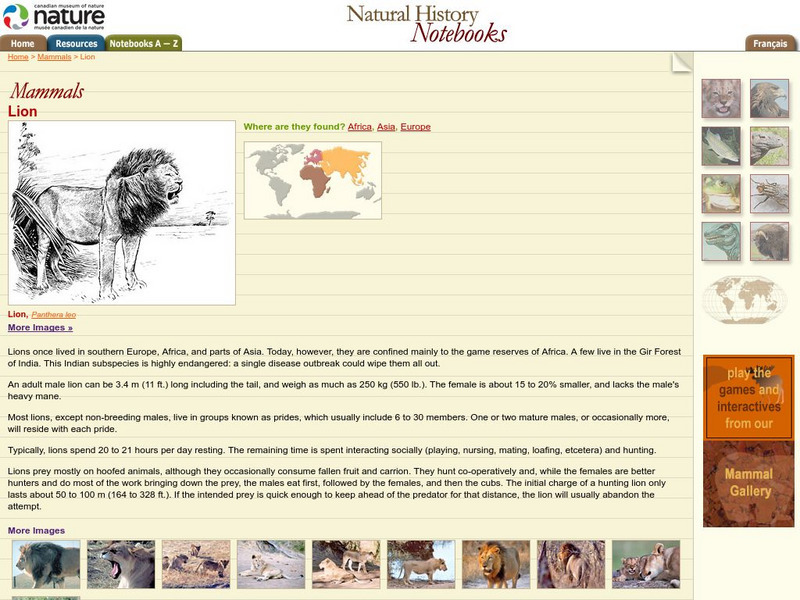 This resource takes an exploratory look at the lion. Content includes information on this animal's physical characteristics, habitat, behavior, diet, caring for the young, predators, and more.