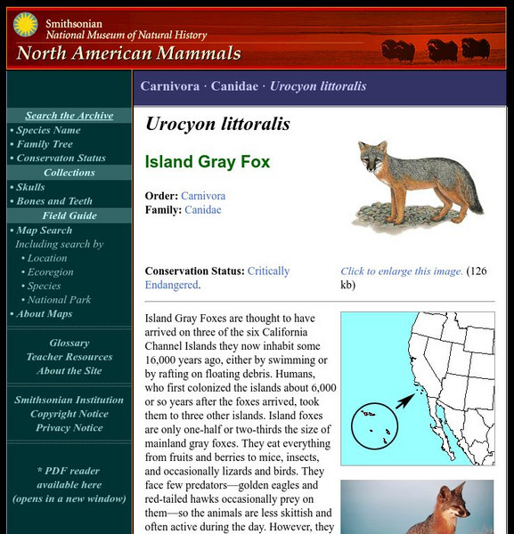 National Museum of Natural History: American Mammals: Island Gray Fox