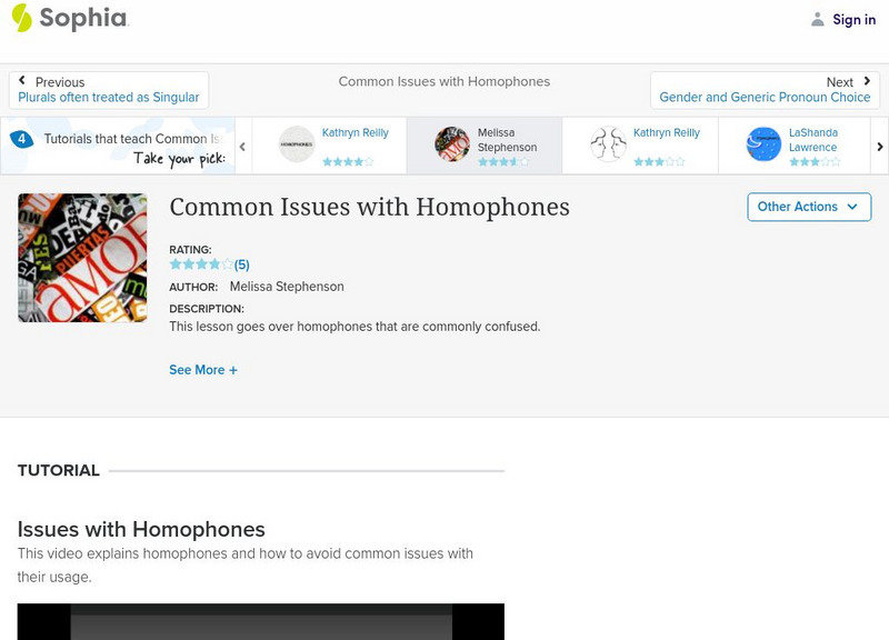 This lesson focuses on homophones: words that sound the same, but have different meanings. First it explains the differences between homonyms and homophones; then it looks at a list of commonly confused homophones, their meanings, and,...