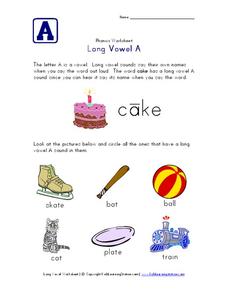 In this long vowel learning exercise, students circle the word in a sentence that has the long vowel a, printing the word on a line after each sentence, 6 total. A reference web site is given for additional activities.