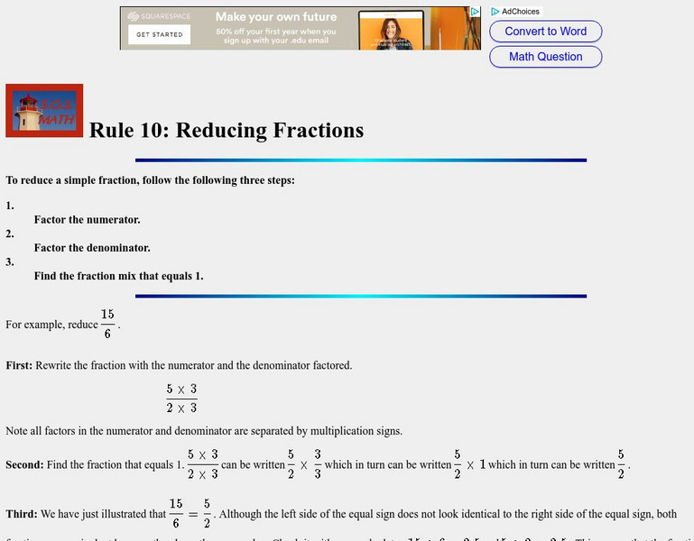 Discovery Education: Web Math: Reducing a Fraction to Lowest Terms