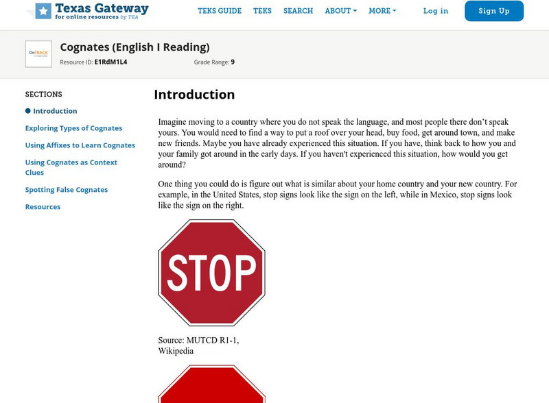 This lesson focuses on cognates, words from different languages that have similar spellings, pronunciations, and meanings. It shows ways that people who are in foreign countries can function by finding similar signs and words.