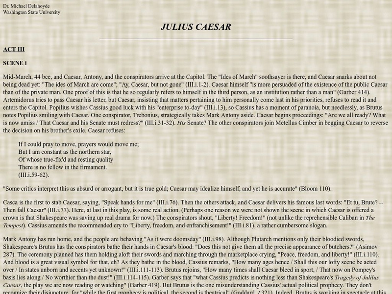 Wenatchee High School: Study Guide for Act Iii of the Tragedy of Julius Caesar