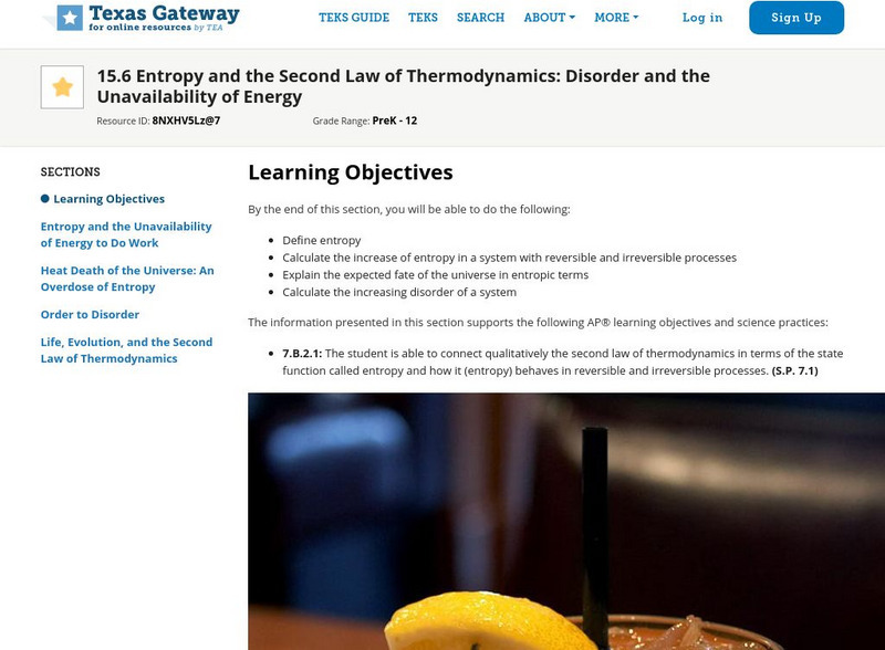Texas Gateway: Entropy & 2nd Law of Thermodynamics: Disorder & Lack of Energy