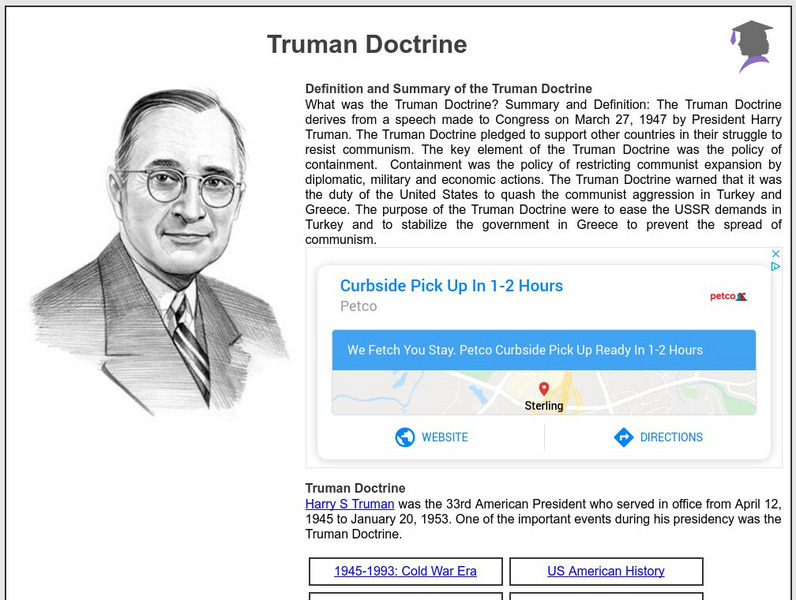 Discussion of the Truman Doctrine that pledged to support other countries in their struggle against communism, the key element being the policy of containment.