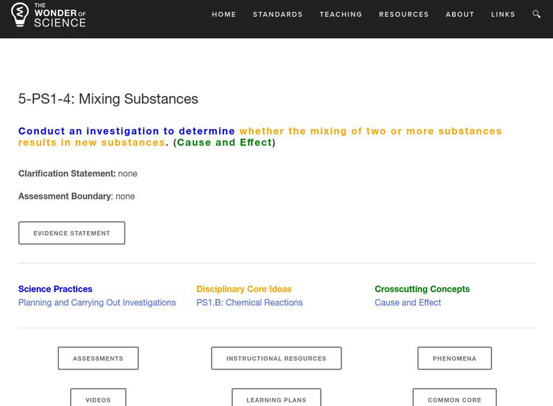 Does mixing two or more substances result in new substances? This site contains work samples, phenomena, assessment templates, and videos that contain content to covers mixing substances.