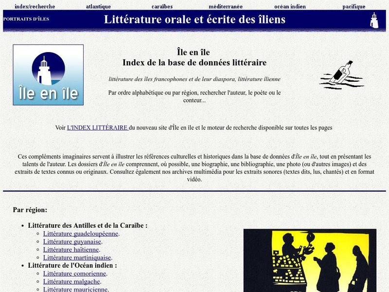 This site provides information on writers and poets from francophonic Caribbean and Antilles islands: Guadeloupe, Guyana, Haiti, and Martinique. Includes biographical information on authors and links to excerpts of their work and...