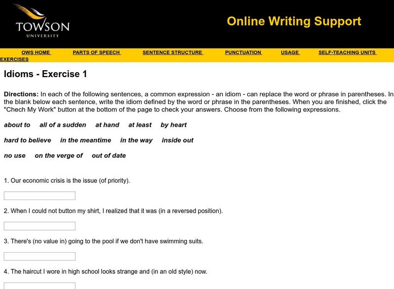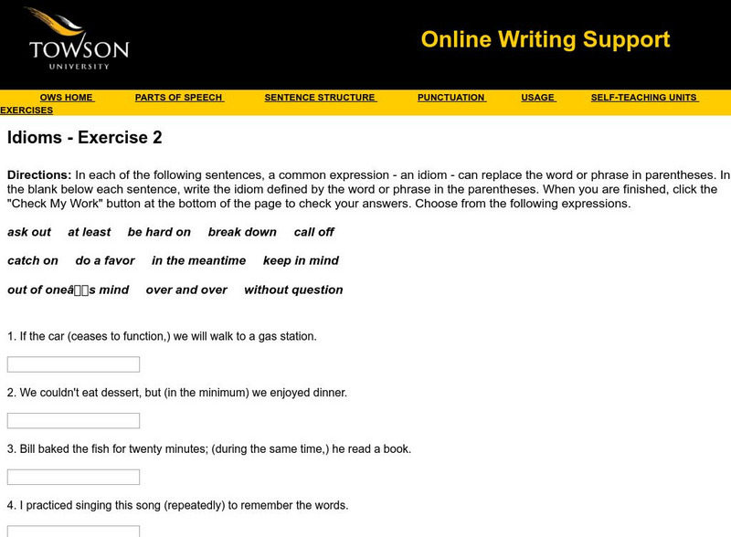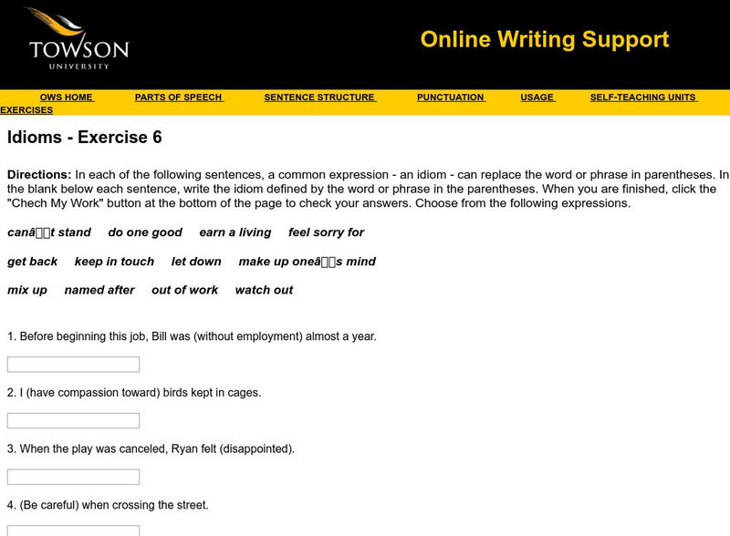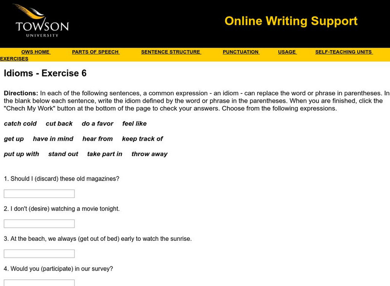 Towson University: Ows: Idioms Exercise 6