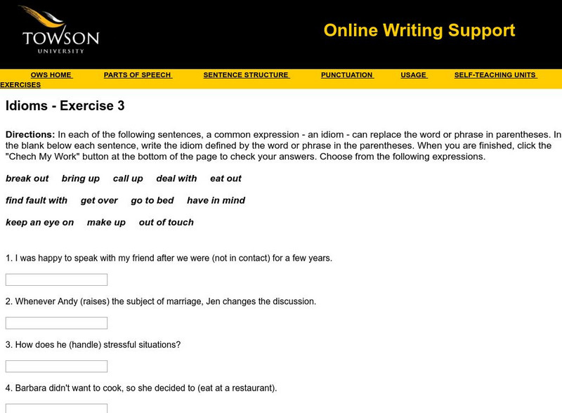 Towson University: Ows: Idioms Exercise 3