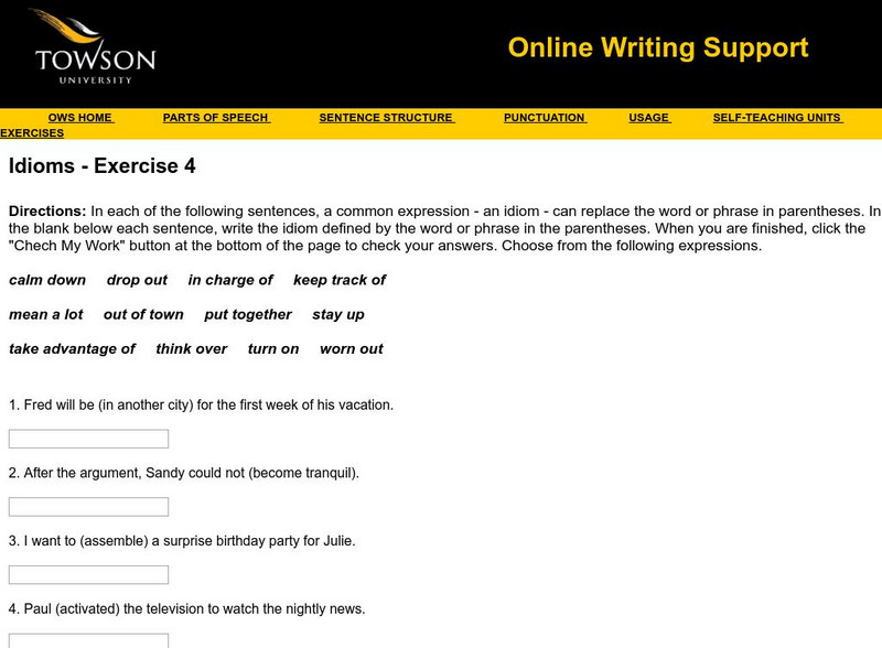 Towson University: Ows: Idioms Exercise 4