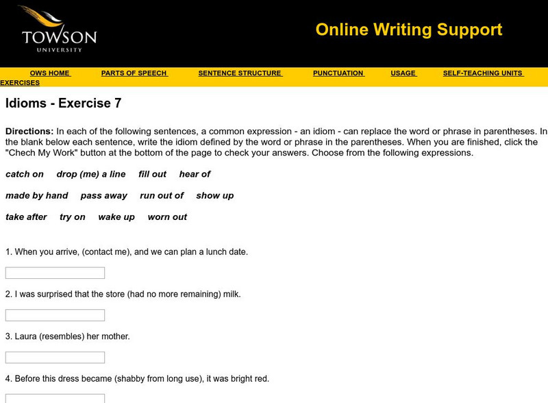 Towson University: Ows: Idioms Exercise 7