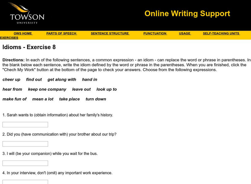 Towson University: Ows: Idioms Exercise 8