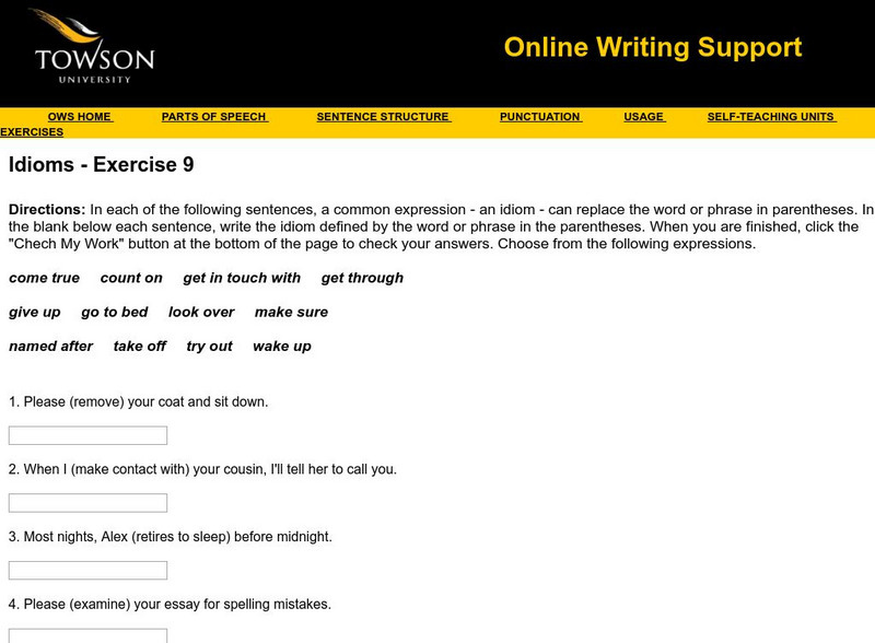 Towson University: Ows: Idioms Exercise 9