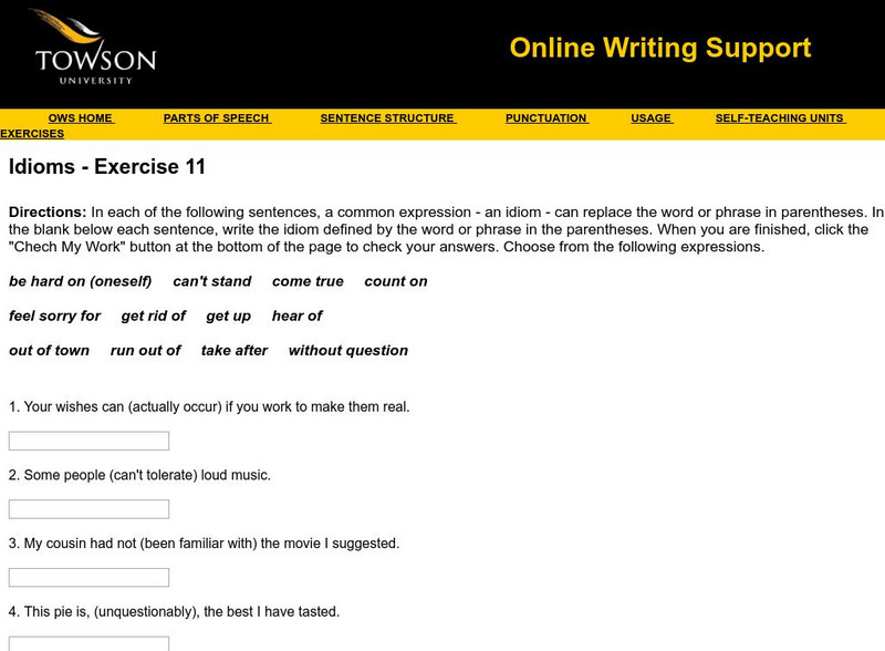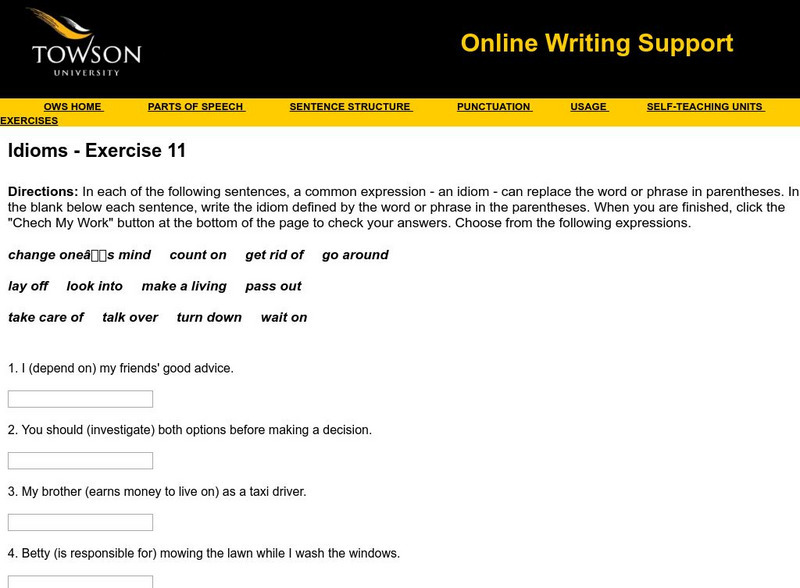 Towson University: Ows: Idioms Exercise 11