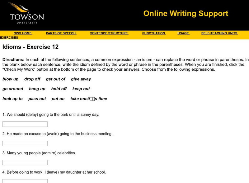 Towson University: Ows: Idioms Exercise 12