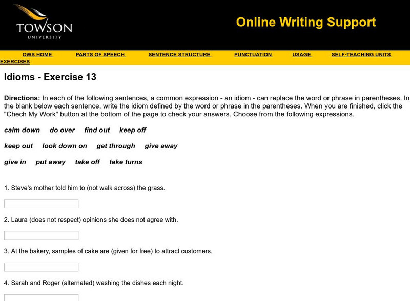Towson University: Ows: Idioms Exercise 13