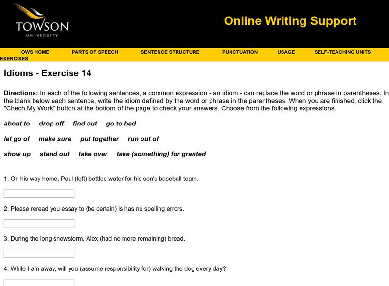Towson University: Ows: Idioms Exercise 14