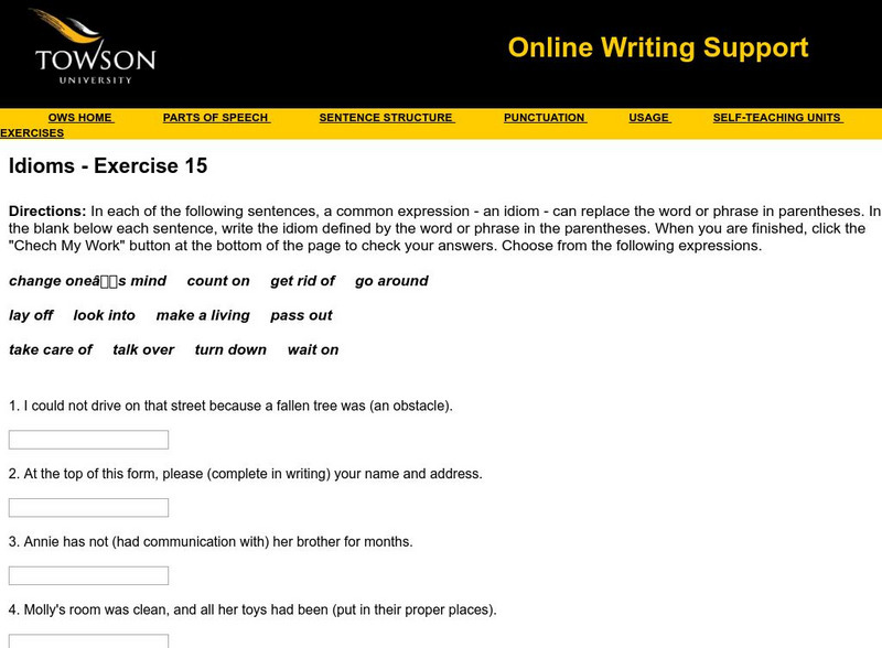 Towson University: Ows: Idioms Exercise 15