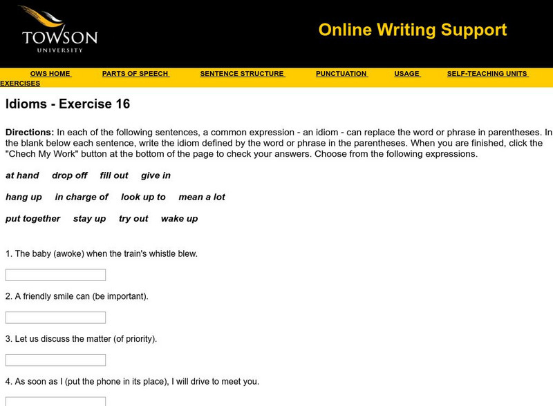 Towson University: Ows: Idioms Exercise 16