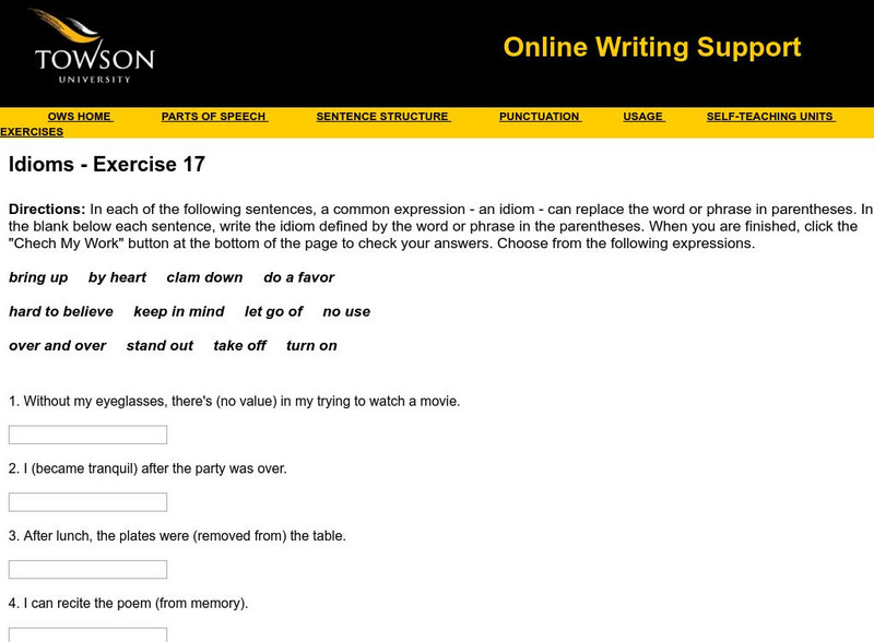 Towson University: Ows: Idioms Exercise 17