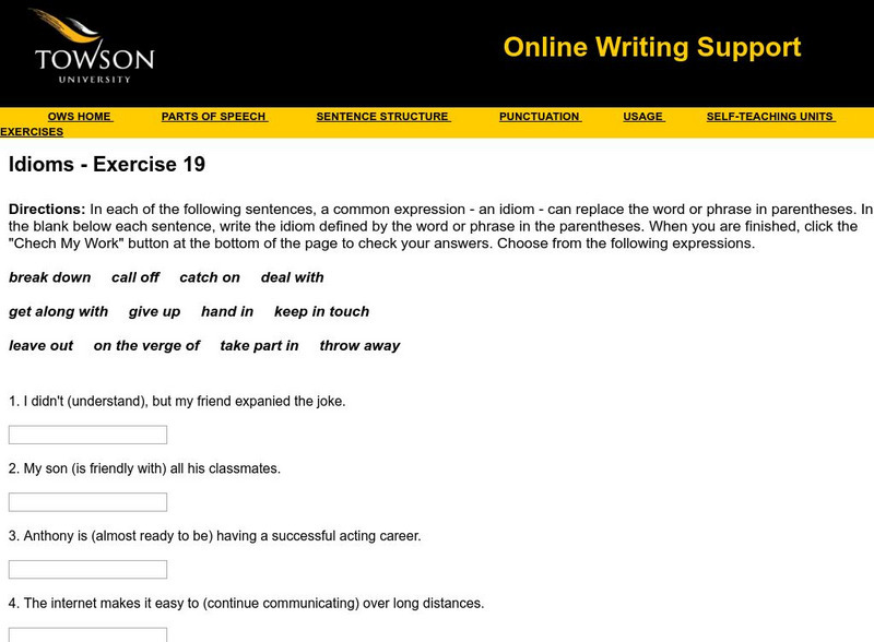Towson University: Ows: Idioms Exercise 19