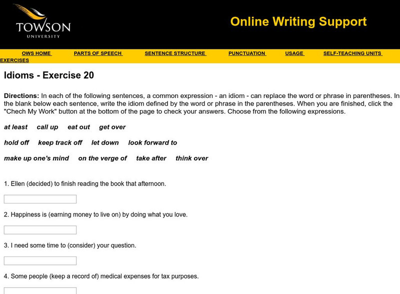 Towson University: Ows: Idioms Exercise 20