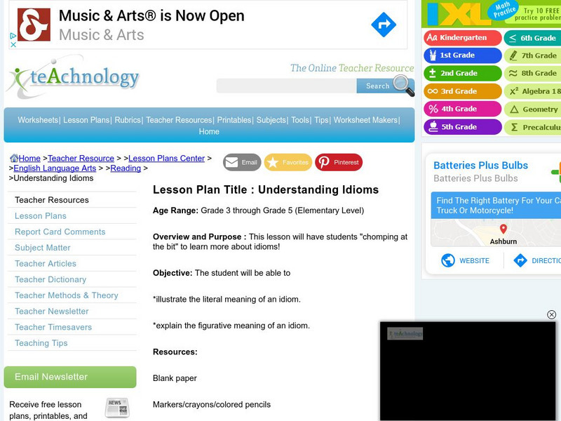 [Free Registration/Login Required] This lesson is an introduction to idioms. It is intended to meet Nevada 8th grade standards in relation to figurative language and idioms.