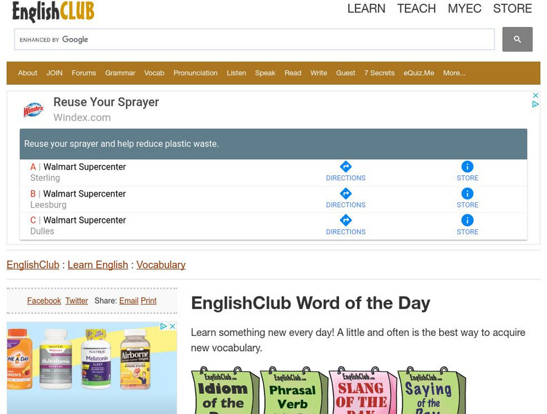 Links to an idiom of the day, phrasal verb of the day, slang of the day, and saying of the day along with a sign up to have these sent via email each day.