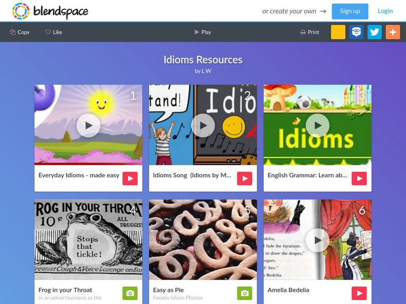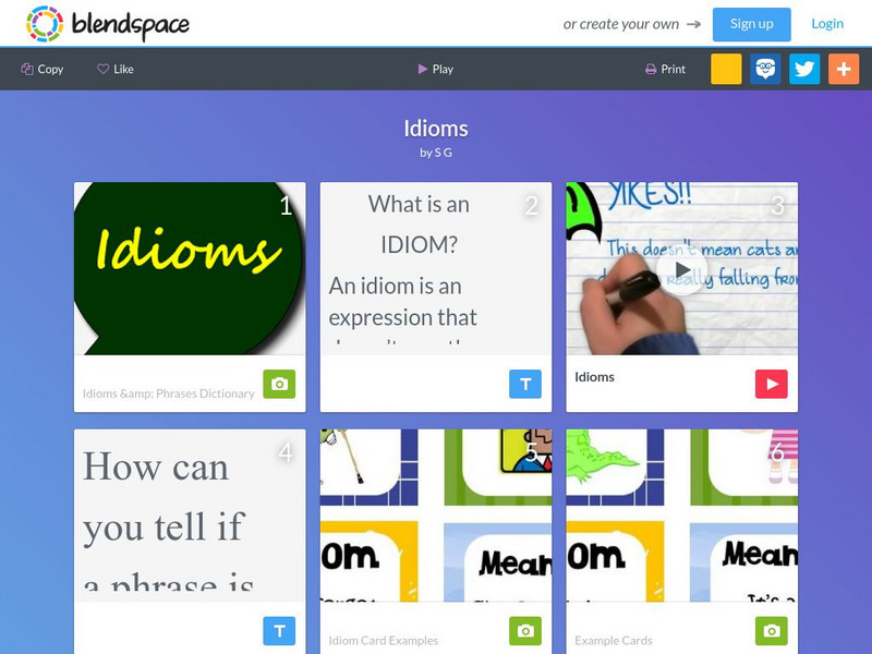A twenty-three-part learning module including links to images and videos on various idioms.