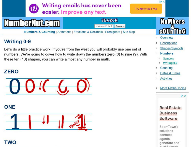 A simple lesson giving instructions on how to write numbers from zero to nine. Writing examples provided as well as links to related counting and number identification games. Both games are interactive and easy to grasp. Activities best...