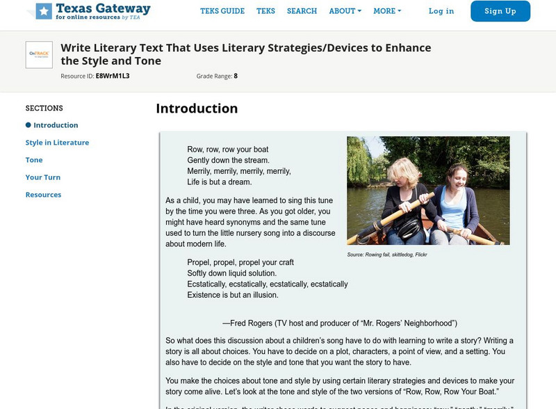 Texas Gateway: Write Literary Text Using Strategies to Enhance Style & Tone
