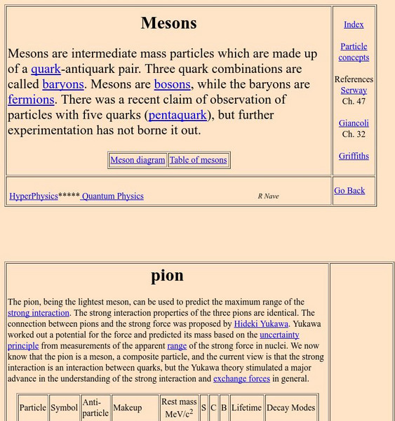 This is a very detailed site containing information on several sub-atomic particles including the Hadron.