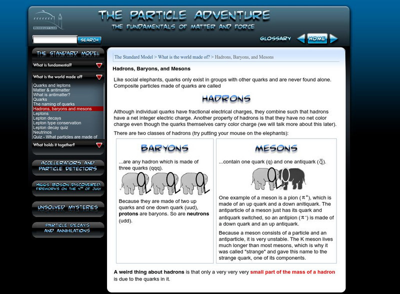 Berkeley Lab: Particle Adventure: Hadrons, Baryons, and Mesons