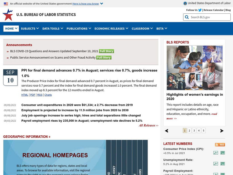 The home of the Bureau of Labor Statistics has a keyword search feature for the BLS web pages. It is an ongoing updated information base.