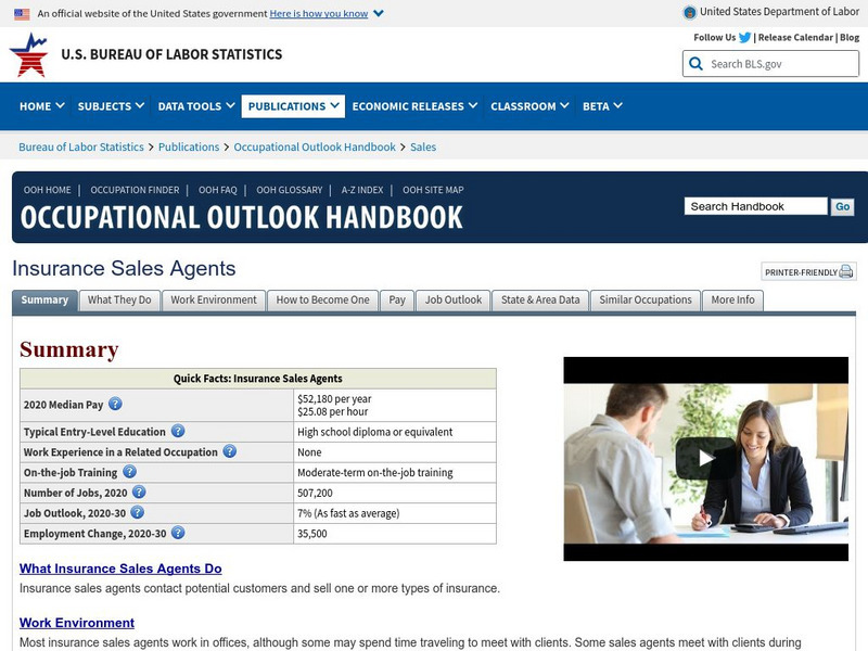 Bureau of Labor Statistics: Insurance Sales Agents