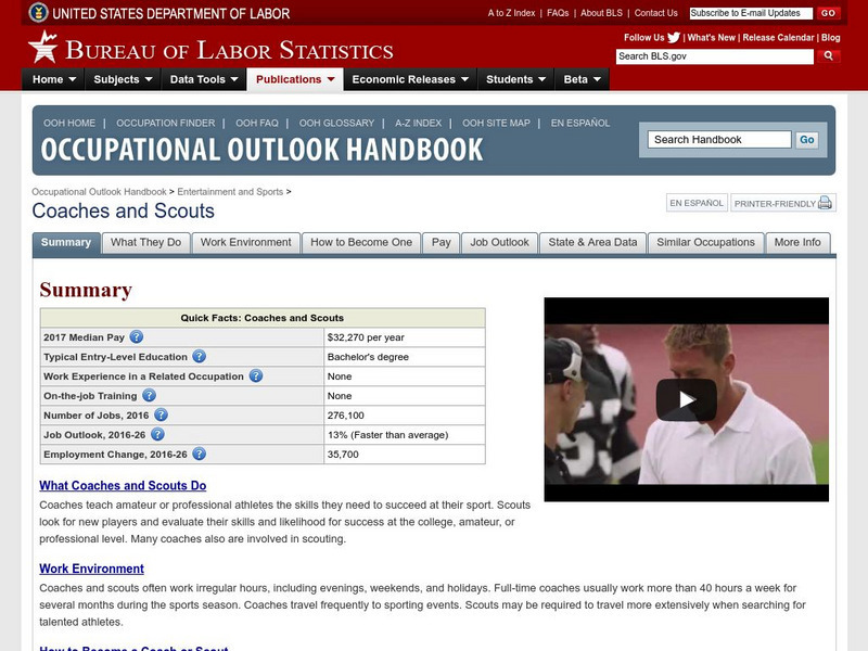 Bureau of Labor Statistics: Coaches and Scouts