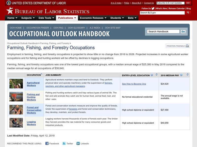 Bureau of Labor Statistics: Farming, Forestry, and Fishing