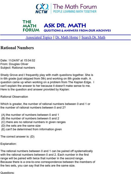 The Math Forum: Ask Dr. Math: Rational Numbers