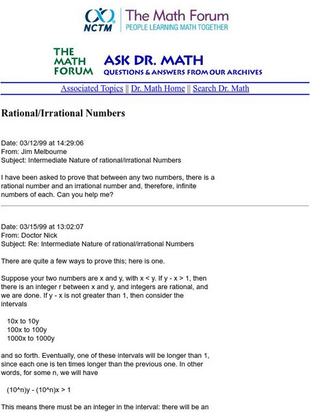 The Math Forum: Ask Dr. Math: Rational / Irrational Numbers