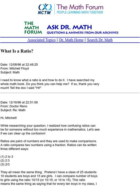 The Math Forum: Ask Dr. Math: What Is a Ratio?