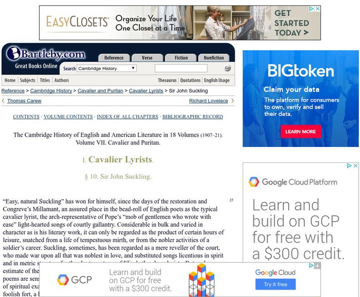 Bartleby.com: Cavalier Lyrists: Sir John Suckling