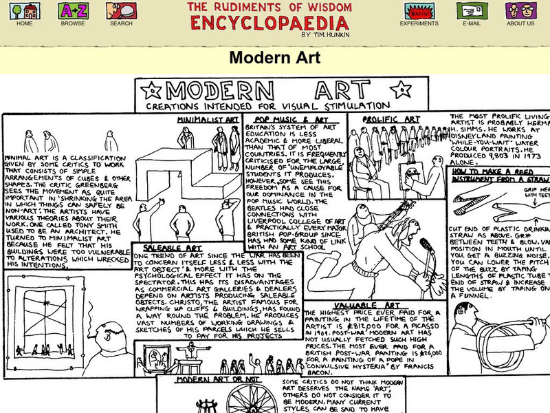 Learn about modern art in a unique way. All of the fun-fact information is drawn in a cartoon style.