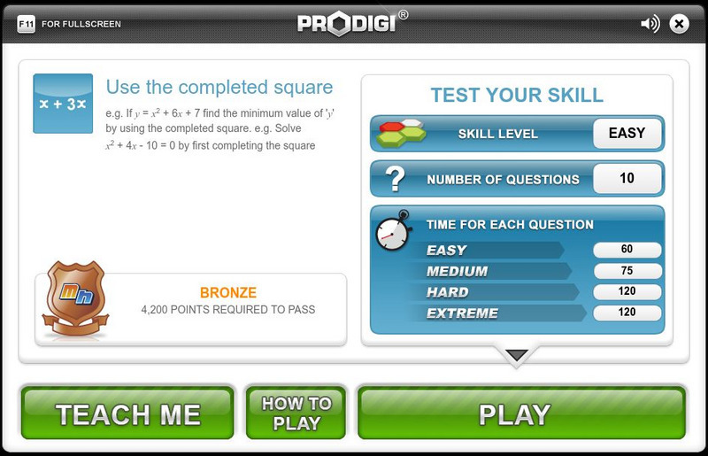 Students learn about the concept of completing the square by exploring a tutorial. They can then test their knowledge by taking a ten question assessment that increases in difficulty as they correctly answer questions.